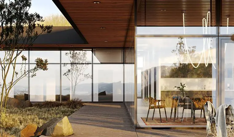 Надежное и долговечное панорамное остекление для любого проекта. Цвет алюминиевых профилей, размеры и фурнитура подбираются индивидуально. Остекление «АЛЮТЕХ» гармонично выглядит в интерьере и экстерьере частного дома.