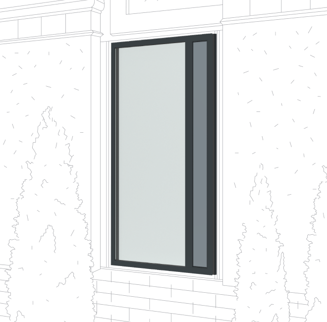 Фурнитура Roto (Германия): скрытые петли, ручка со скрытым редуктором, ограничитель открывания.