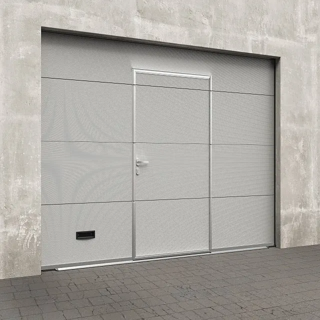 для отдельного входа-выхода. Гармонично сочетается с воротами, придавая фасаду помещения завершенный вид